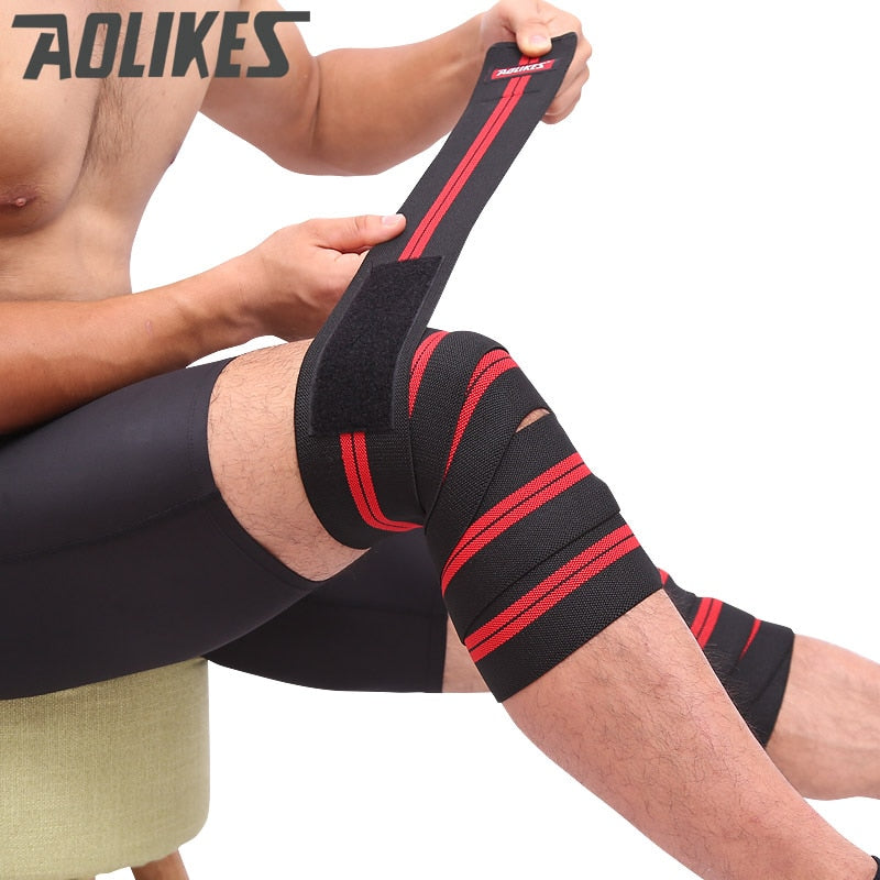 AOLIKES 1pcs 180*8cm Knee Wraps Men's Fitness Weight Lifting Sports Knee Bandages Squats Training Equipment Accessories for Gym